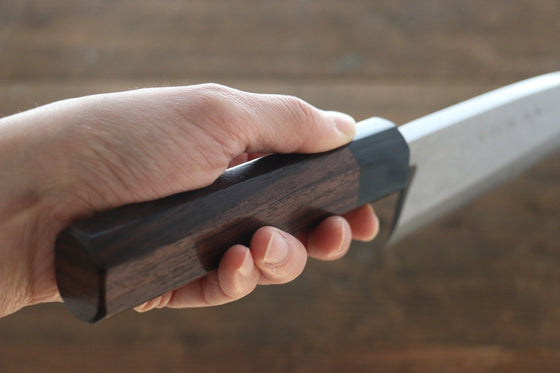 Born in 1950, knife smith Hideo Kitaoka works in Takefu Village, Echizen City, Fukui Prefecture. From a young age Kitaoka began learning his craft from his father and now specializes in traditional single bevel knives. Keeping with tradition, Hideo Kitaoka forges his blades from high carbon steel for the finest edge quality. The superior craftsmanship resonates throughout the body as you use these knives, making you the envy of sushi chefs around the world.Specifications: