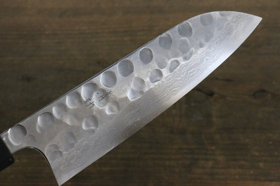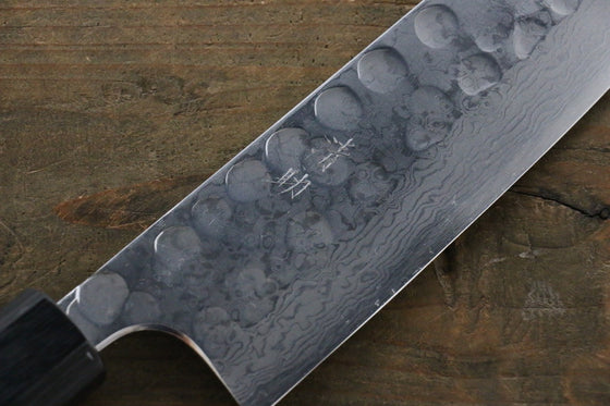Seisuke Blue Steel No.2 Hammered Damascus Santoku 180mm Shitan Handle